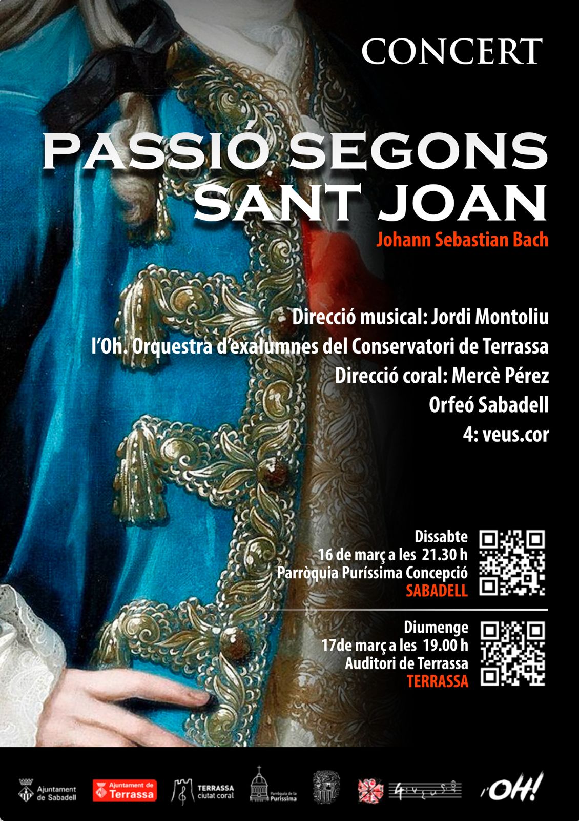 L’Oh!rquestra de Terrassa, juntament amb els cors 4:veus.cor de Terrassa i l’Orfeó de Sabadell, vam cantar i tocar una de les obres més emblemàtiques de Johann Sebastian Bach: La Passió Segons Sant Joan.